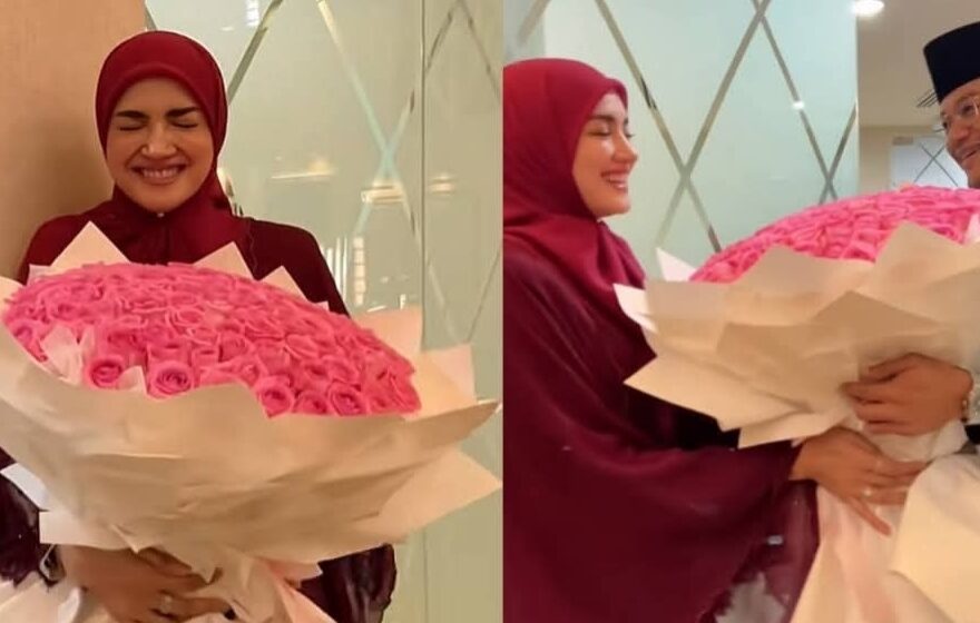 Pelakon dan usahawan, Nur Fazura mencuri perhatian ramai setelah menerima kejutan bunga mawar daripada aktor Que Haidar. Gembira terima bunga