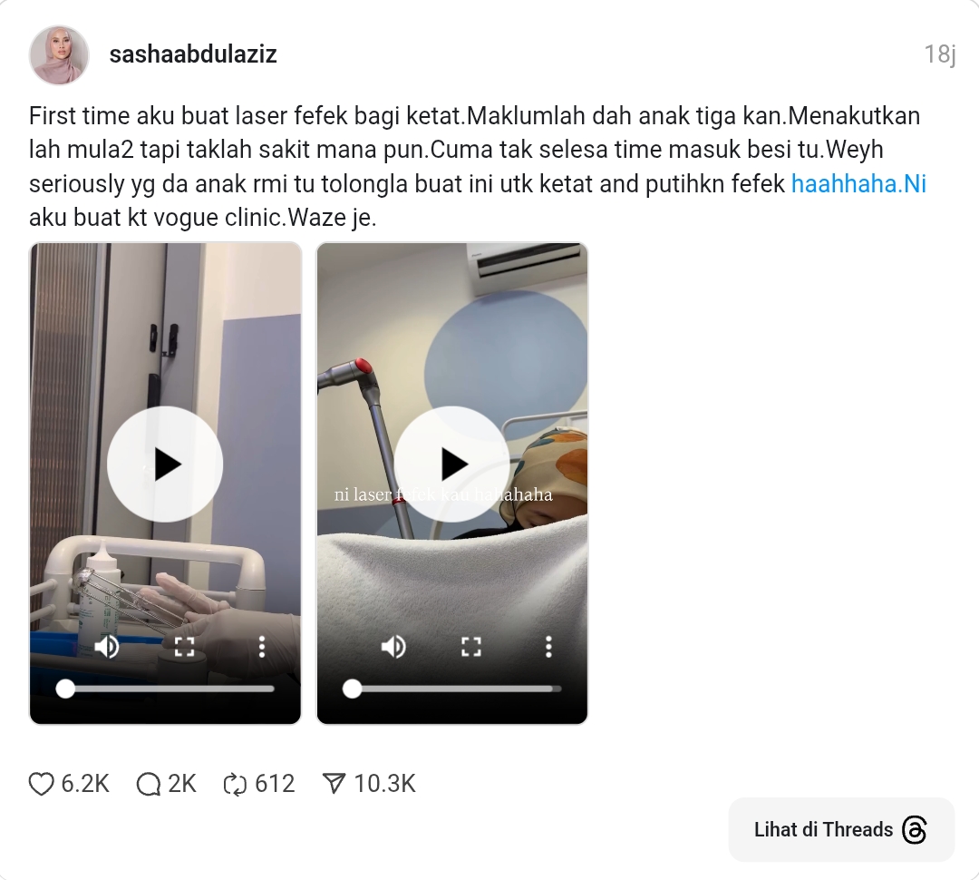 “Awak tak sepatutnya post benda ni” Sasha Abdul Aziz kongsi vdeo pengalaman rawatan ketatkan faraj..