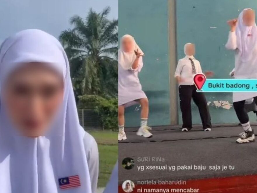 Menerusi perkongsian seorang individu di sebuah laman grup Facebook, kelihatan dua wanita rancak bersenam dengan mengenakan baju kurung putih seperti pakaian seragam sekolah tanpa kain dan seorang yang lain memakai ‘legging’ hitam jarang.