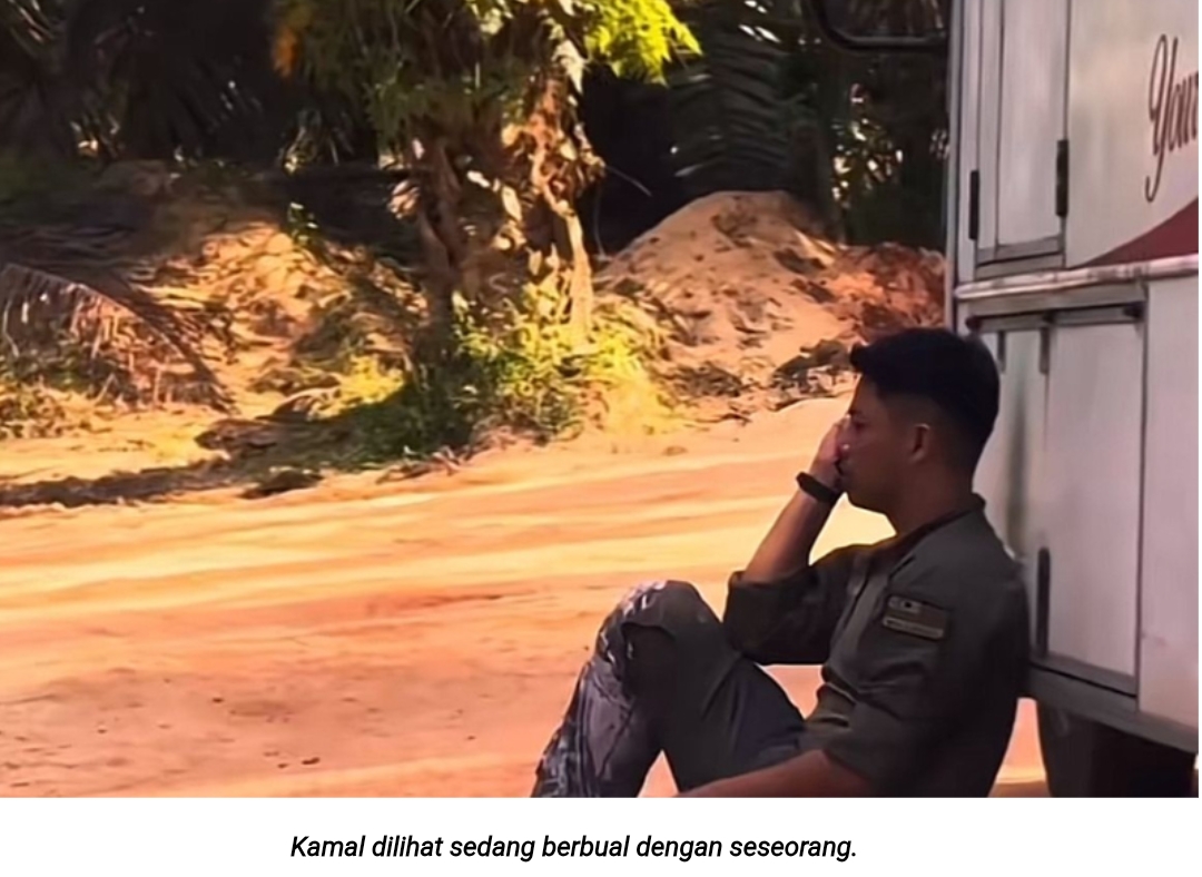 Dalam video itu, Kamal dilihat terduduk di tanah sambil bersandar pada lori serta kelihatan serius berbual di telefon.