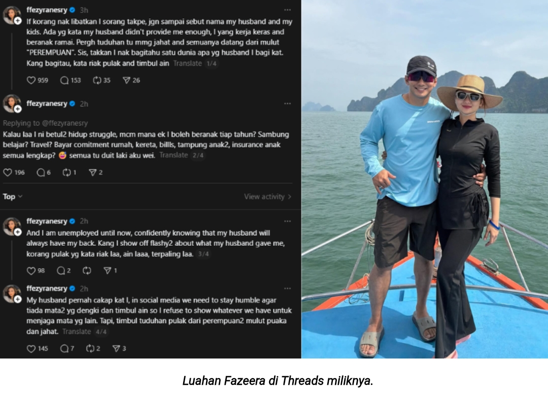 Dalam pada itu, kata Fazeera dia sentiasa mengingati pesanan suaminya agar menjaga batas perkongsian di media sosial demi mengelakkan timbulnya salah faham dan pandangan negatif.